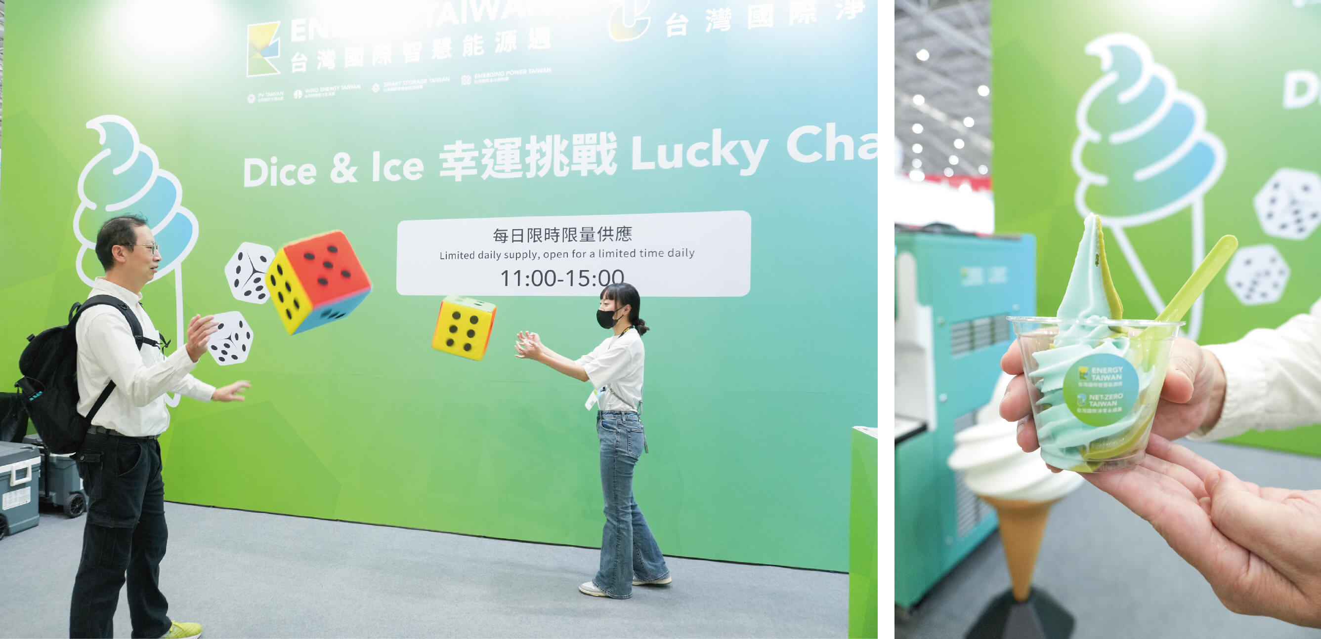 大會特別設計幸運挑戰遊戲,邀請民眾與工作人員擲骰子比大小,只要獲勝就可以兌換一杯「美味冰淇淋」,現場民眾大排長龍。