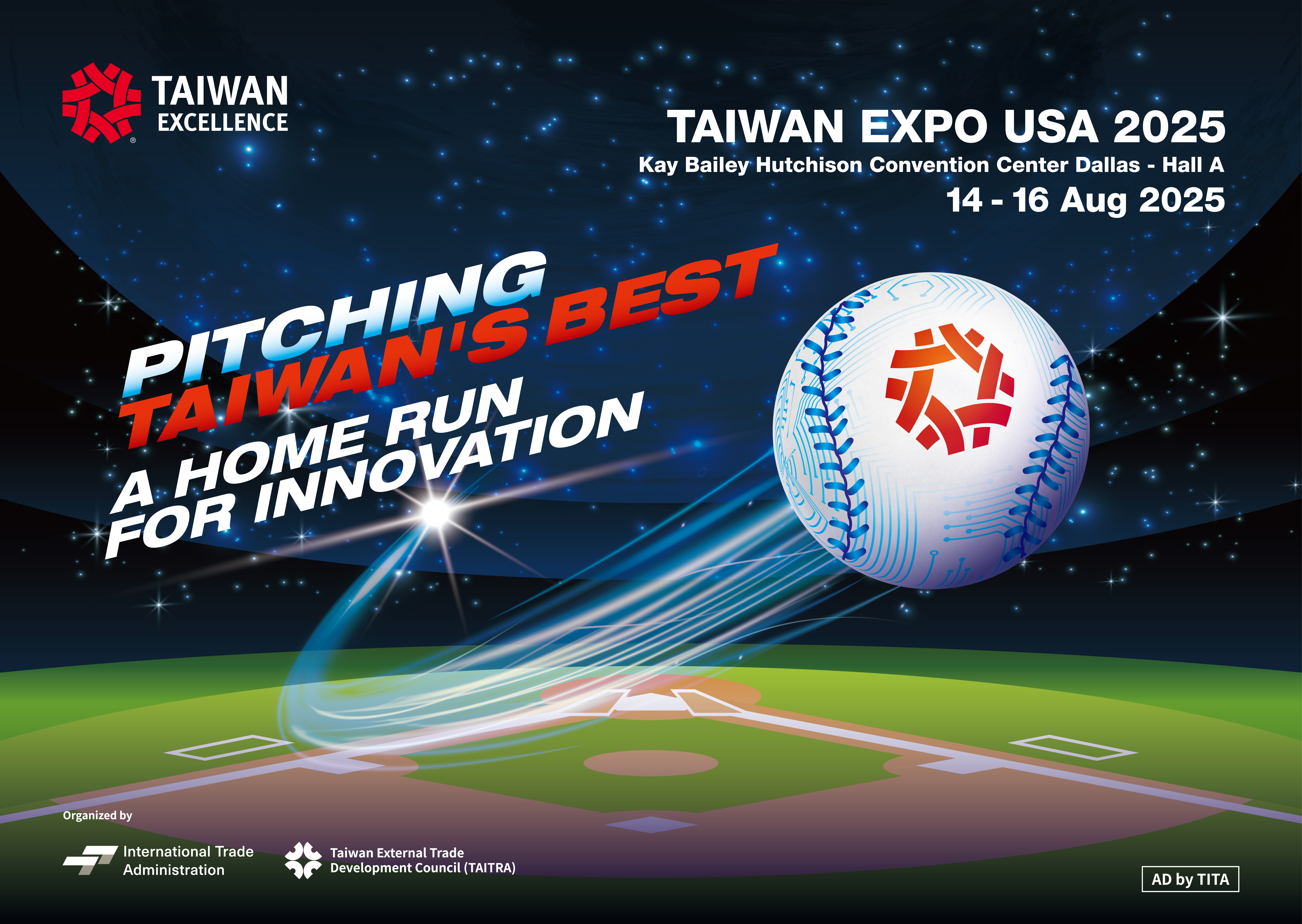 本次主視覺以「星際」與「棒球」為概念核心,將臺灣精品棒球視為能量核心,自球場擊出、直奔宇宙,象徵臺灣產品以全壘打之姿站上世界舞台。
