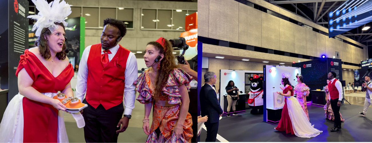展區首創沉浸式劇場導覽,由專業劇團以敘事手法演繹台灣精品的科技亮點與文化價值,觀眾在導覽過程中,不僅能了解 AI、智慧生活、醫療科技等前沿技術,亦能從戲劇化演繹中感受台灣品牌的創新精神,大幅提升停留時間與品牌好感度!