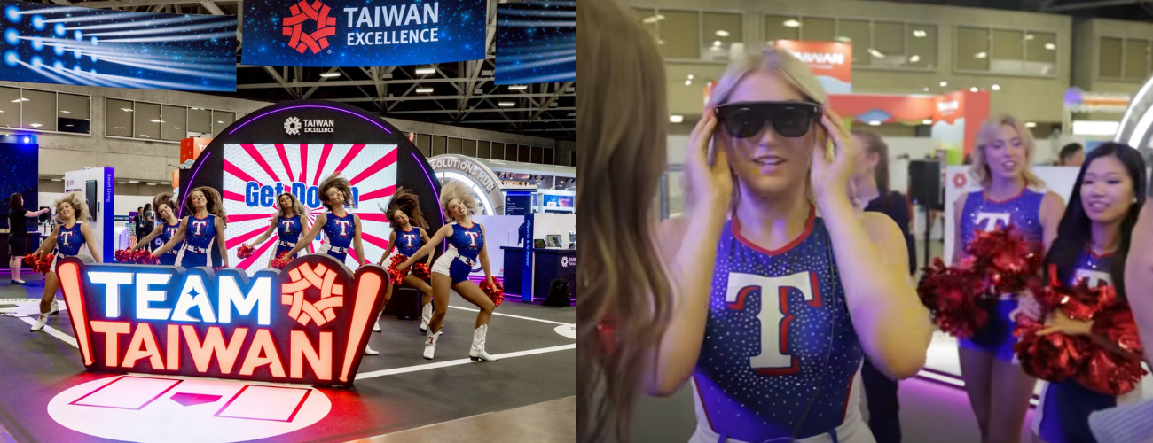 MLB 德州遊騎兵啦啦隊 Six Shooters 受邀現身台灣精品館,以熱力四射的應援演出拉開展場序幕,特別重現中華職棒 Team Taiwan 經典應援曲〈臺灣尚勇〉。